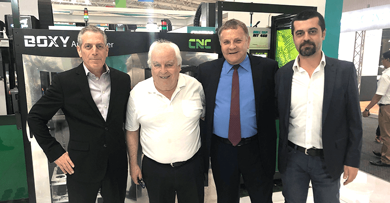 CNC İleri Teknoloji, Boxy Autoloader Kompakt Robot Yükleme Boşaltma Sistemleri Imtex 2019 Takım Tezgahları Fuarı‘nı büyük bir başarı ile tamamlayarak Hindistan’da önemli bir başarıya imza attı. Boxy Autoloader Type 1 ve Boxy Autoloader Type 2 modellerinin sergilendiği Imtex 2019 fuarında, binlerce imalatçıya son teknoloji yükleme boşaltma sistemleriyle bilgi verilirken, 100’den fazla potansiyel müşteri ile devam eden projeler görüşülerek ciddi bir satış başarısının ilk adımları atılmış oldu. CNC İleri Teknoloji’nin Hindistan iştiraki olan LER Engineering ve Boxy Autoloader Kompakt Robot Yükleme Boşaltma Sistemleri Hindistan bayii COSMOS IMPEX birlikteliği ile katılım sağlanan Imtex 2019, sadece Hindistan’lı üreticiler değil sektörün önde gelen firmalarından ISCAR, MAKINO, IMC GRUP, MAKINO SEIKI, MAXXTRON, AKIRA SEIKI, AUTOCAM tarafından da ziyaret edilerek ilgi topladı. Bu ziyaretlerden en önemlisi IMC Grup ISCAR CEO’su Jacob Harpaz tarafından gerçekleştirilen ziyarette, Yönetim Kurulu Başkanımız Yair Geller tarafından Boxy Autoloader sistemi tanıtılarak sistemin Robot ile yükleme boşaltma alanındaki avantajları ve eşsiz özelliklerinin tanıtımı gerçekleştirildi. Boxy Autoloader Robot Yükleme Boşaltma Sistemleri olarak ilerleyen günlerde takım tezgahları ve otomasyon ile ilgili fuar ve etkinliklere katılım gerçekleştirilerek, Boxy Autoloader sistemlerinin daha çok üretici ile buluşması sağlanarak, tüm üretici firmaların Robot otomasyona geçtiği günümüzde müşterilere en verimli çözümleri sunmaya devam edeceğiz. Robot Otomasyon Değil sloganı ile çıktığımız bu yolda, Terzi usulü yükleme boşaltma sistemleri yerine müşterilerimize sunduğumuz hazır sistemler ile hem fiyat performans avantajı hem de teknolojik altyapımız ile en başarılı otomasyon sistemlerini en kısa sürede müşterilerimize temin etmeye devam edeceğiz.